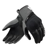 Die Motorradhandschuhe sind aus einer Kombination von Leder und Polyester hergestellt.